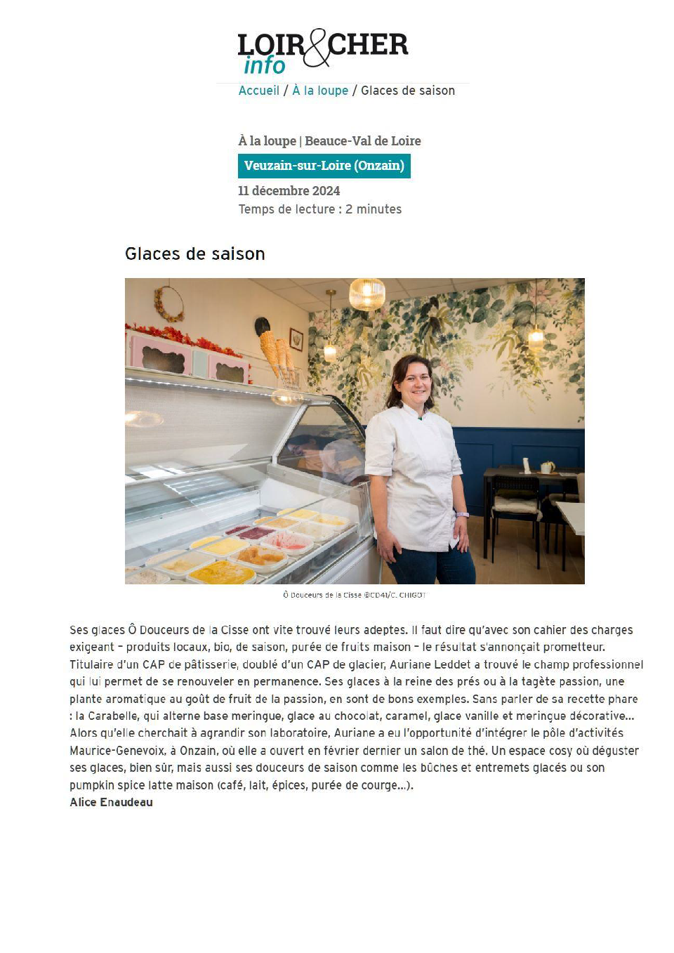O'Douceurs de la Cisse dans Loire et Cher Info